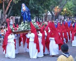 En la tarde se realiza otra procesión en las principales calles de la ciudad ya con Jesús clavado en la cruz, esta procesión es más larga y completamente en silencio, en ésta hombres y mujeres vestidos de negro cargan cruces, velas y estatuas que escenifican la crucifixión.