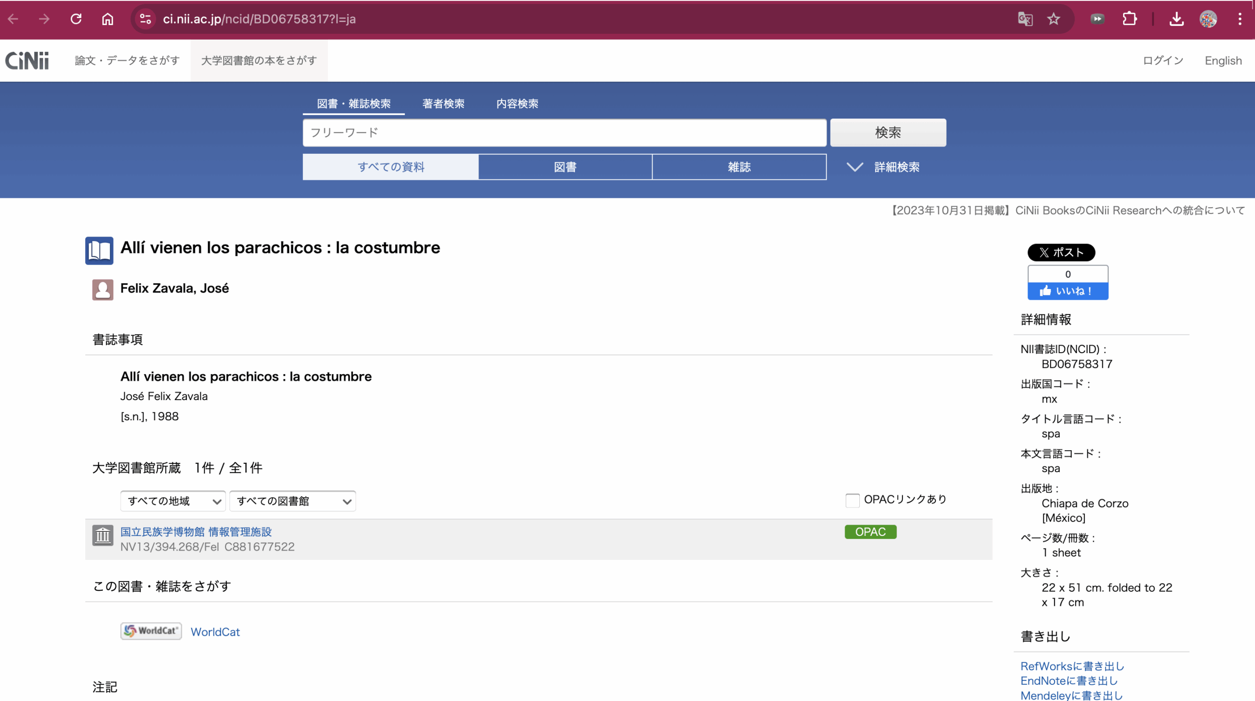 “Allí Vienen Los Parachicos” en acervo de la Biblioteca del Museo Nacional de Etnología de Osaka (Minpaku), el más grande de Japón.